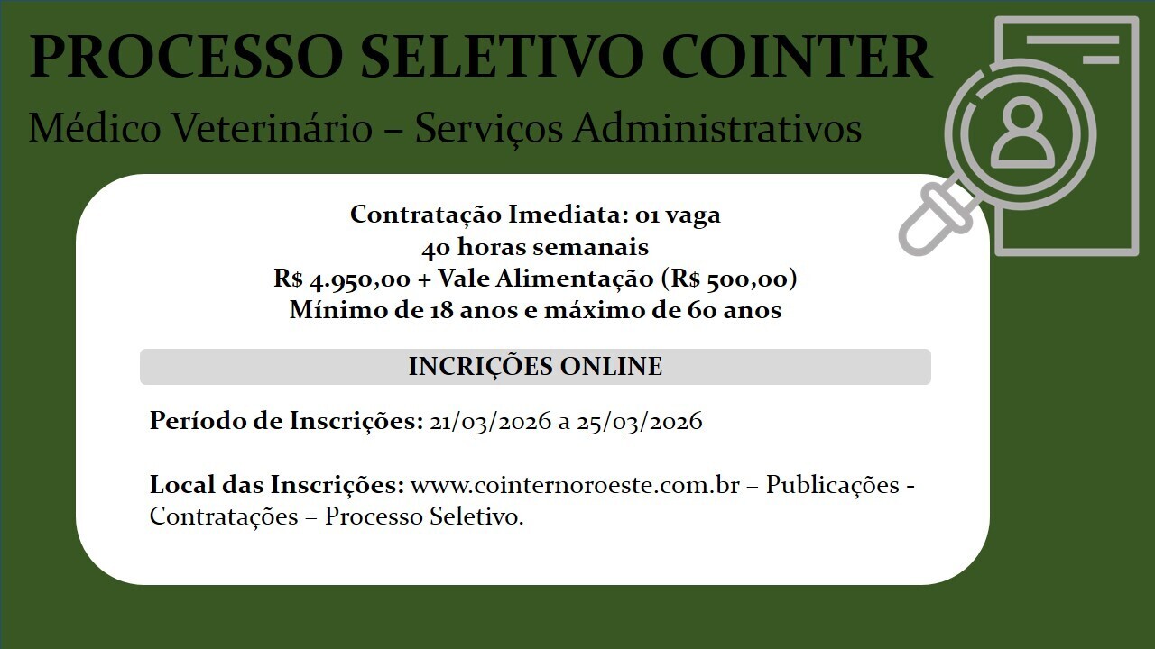 COINTER abre Processo Seletivo Simplificado 001/2026 para contratação temporária